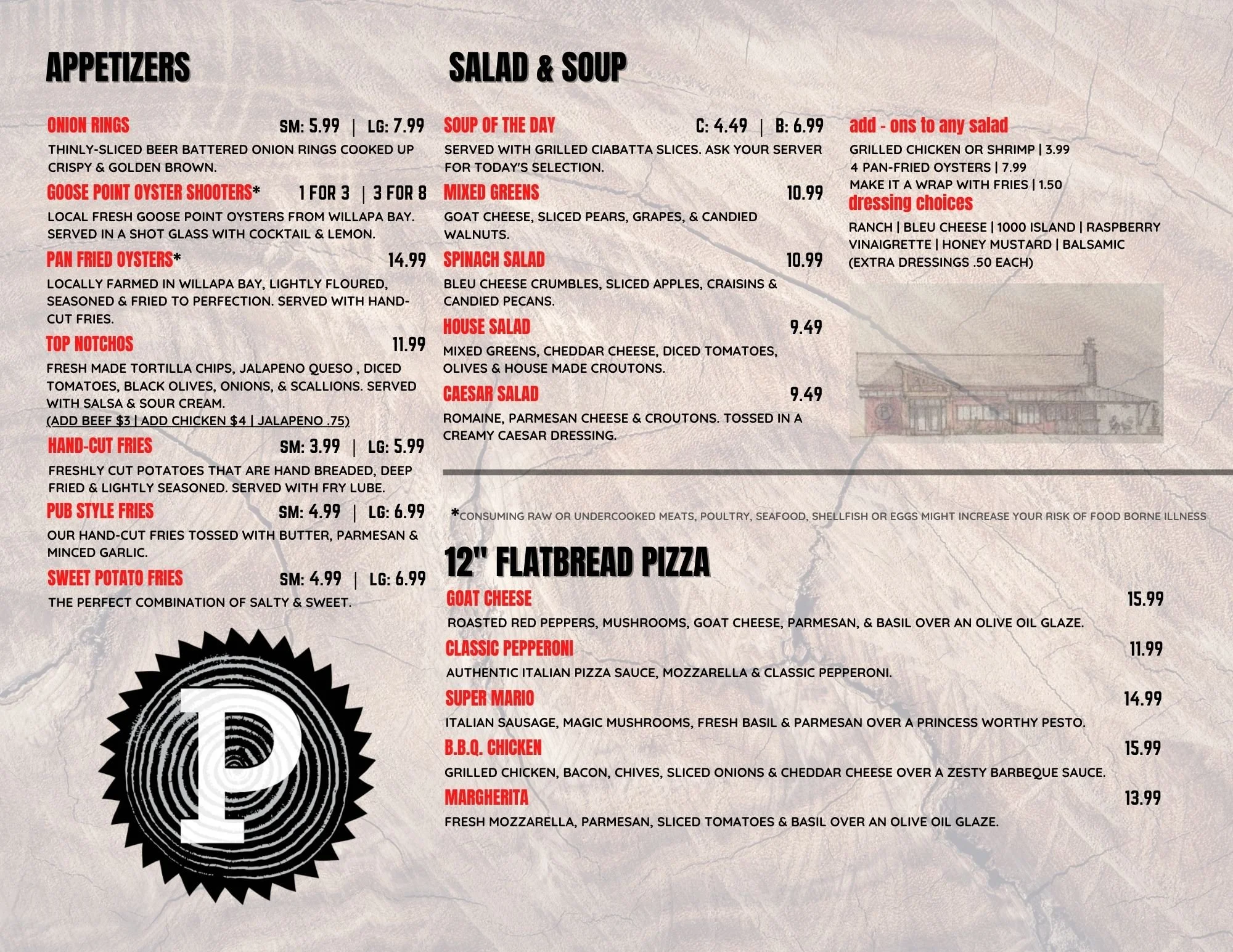 Pitchwood Alehouse aims to lure travelers to the oft-forgotten downtown core of Raymond with the promise of great food made with fresh ingredients, a wide selection of draft beer (19 taps), and friendly service. In the Best of Twin Harbors 2017, the Pitchwood was proudly honored for Best Lunch and Best Wait Staff while taking runner up for Best Burger and Best Mixed Drinks. We have received 2015 and 2016 Certificate of Excellence awards from TripAdvisor and we were Traveler's Companion's Best Burger in Southwest Washington.